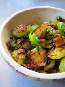 Even as kids in our house, when the standard treatment for all vegetables was boil till textureless, we never complained about Brussels sprouts, and to my knowledge everyone in my family still chomps down on them with enthusiasm. But I guess the earthiness could be off-putting for kids, and I suppose the occasional metallic sort of bitterness one can experience has given them a bad name. For many winters now I’ve been simply tossing some Brussels sprouts in loads of olive oil and hurling into the roasting pan with other veg, for as we know well on this blog, a little roasting makes everything taste better. And I’m dying to try the pasta recipe offered by Diana in comments on the cabbage post here.