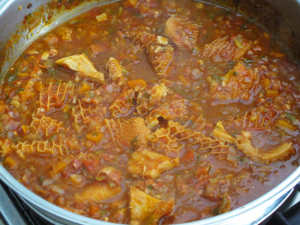 Senor arrived home just as the eating experiment began, and wolfed into a bowl of tripe himself. Being the iron-guts and utterly unflappable gourmand he is, of course he had no truck whatsoever with my mental carry-on, and pronounced it delicious. We still have three more bits of tripe in the freezer, and Senor has declared he’s going to get into a bit of tripey experimentation himself.