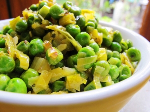 This one is apropos of nothing really, except that I love peas. And I love leeks. And I love anchovies. And it’s the kind of side dish that can be made ahead, and eaten hot or room temperature or even chilled. And any sous-chef can make it on their way to turning the tables and becoming the King or Queen of the Kitchen.