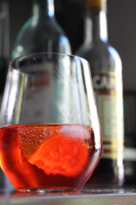 An Americano is simple - chuck into a glass equal parts Campari & sweet Vermouth, a few cubes of ice and a wedge of orange - and top up with as much soda water as you like. If you add a slug of gin, it’s a Negroni.