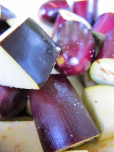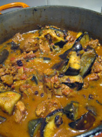 I used two medium eggplants which were heavier than 220g each by a long way, and I used double the pork mince because that’s the amount I had in the freezer (from Feather & Bone, natch, so it was deeeeeliciously full of free-range fat and flavour), and I used only half the chilli because we are wimps, but otherwise the sauce quantities stayed the same. Oh and I used a bit of leek because I didn’t have any green onion. Despite all this bastardisation it was unbelievably good.