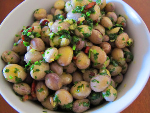 At the risk of having to rename this blog Purely Pulses, I have to tell you about my first encounter with fresh borlotti beans. I am a big fan of the dried variety - and the canned - but until now I’ve never tried cooking fresh ones. But the other day I spied some in the grocery and couldn’t resist their splotchy raspberry-swirl stockings.