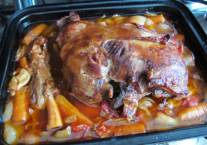 If you’re cooking for a crowd, this all-day, slow-roasted leg of lamb has to be just about the easiest - and most meltingly, lipsmackingly good - way to do it. I’ve adapted this recipe slightly from Patricia Wells’ Bistro Cooking, but there are countless recipes around for similarly slow cooked lamb.