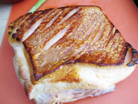 I did sear the meat skin-side first as per the recipe, and although as you can see my scoring and cross-hatching of skin wasn’t nearly as elegant or intricate as Poh’s, it did the job of rendering away some of the fat just fine.